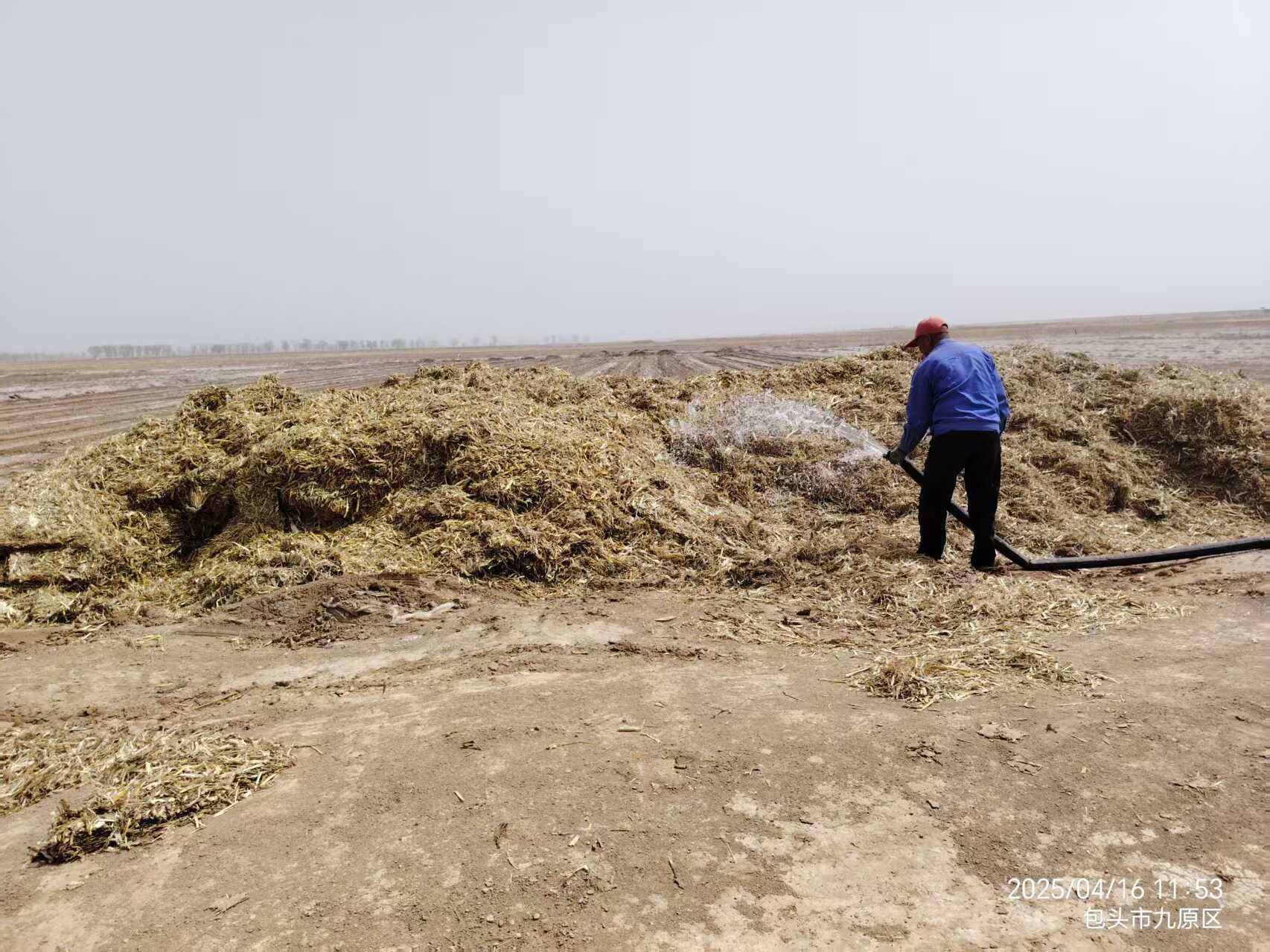 ▲菌劑與秸稈制備阻鹽材料